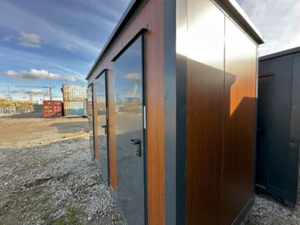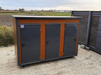 Podwójny kontener sanitarny wykonany z płyty warstwowej 6 cm to komfortowe, trwałe i ekonomiczne rozwiązanie sanitarne dla inwestycji budowlanych, terenów rekreacyjnych, firm oraz użytkowników prywatnych. Model ten składa się z dwóch niezależnych kabin, każda z osobnym wejściem z zewnątrz. Obie kabiny wyposażone są w muszlę klozetową i umywalkę z ciepłą wodą, natomiast jedna z nich zawiera dodatkowo pisuar, co zwiększa wydajność i komfort użytkowania.