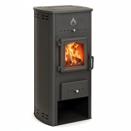 Korpus naszej kuchni wykonany jest z wysokowytrzymałej stali kotłowej. Producent nie oszczędza na jakości stali jak i jej grubości. W tym piecu nic nie „dzwoni” przy stukaniu w korpus. Piec jest solidny i trwały. Wytrzyma wiele lat użytkowania.