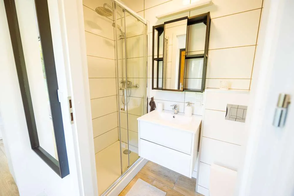 Dom jest dostarczany pod klucz. Posiada w pełni funkcjonalną łazienkę, opcjonalną kuchnię, oddzielną sypialnię, wentylację, klimatyzację z funkcją ogrzewania, podgrzewacz wody i ogrzewanie podłogowe na podczerwień.