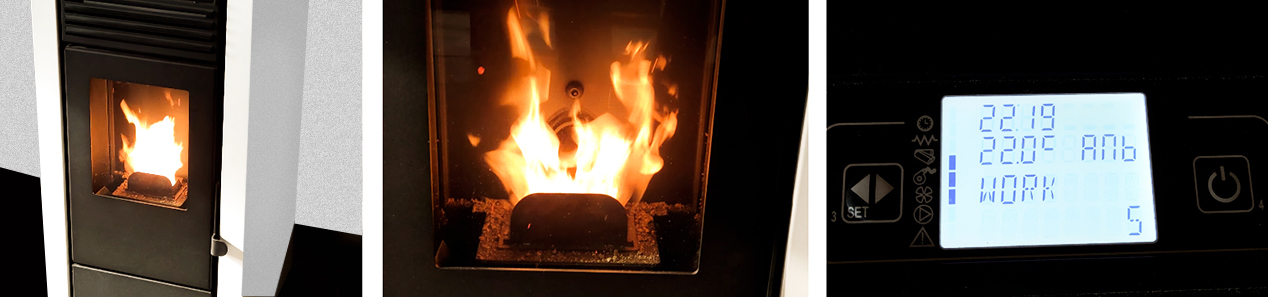 Urządzenie jest bardzo łatwe w obsłudze i czyszczeniu. Wsypujemy pelet do wbudowanego zasobnika, wciskamy przycisk włącz, ustawiamy temperaturę i po paru minutach zaczynamy cieszyć się widokiem żywego ognia i ciepłem które on daje.