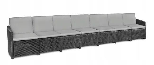 Jedyny taki na rynku zestaw wypoczynkowy MAXI KING 26 w 1, to najnowszy projekt z kolekcji EUROHIT Garden! PODUSZKI W ZESTAWIE Bogaty komplet mebli ogrodowych składa się z zestawu startowego: 4 foteli oraz 2 sof czteroosobowych, z którego można złożyć swój idealny zestaw dla aż 12-osób! Przykładowe warianty modyfikacji zestawu: • stół + 12 foteli, • stół + 10 foteli + 1 sofa 2-osobowa, • stół + 9 foteli + 1 sofa 3-osobowa, • stół + 8 foteli + 1 sofa 4-osobowe, • stół + 8 foteli + 2 sofy 2-osobowe, • stół + 7 foteli + 1 sofa 4-osobowa, • stół + 7 foteli + 1 sofa 3-osobowa + 1 sofa 2-osobowa, • stół + 6 foteli + 1 sofa 4-osobowa + 1 sofa 2-osobowa, • stół + 6 foteli + 2 sofy 3-osobowe, • stół + 6 foteli + 3 sofy 2-osobowe, • stół + 5 foteli + 1 sofa 7-osobowa, • stół + 5 foteli + 1 sofa 5-osobowa + 1 sofa 2-osobowa, • stół + 5 foteli + 1 sofa 4-osobowa + 1 sofa 3-osobowa, • stół + 5 foteli + 1 sofa 3-osobowa + 2 sofy 2-osobowe, • stół + 4 fotele + 1 sofa 6-osobowa + 1 sofa 2-osobowa, • stół + 4 fotele + 1 sofa 5-osobowa + 1 sofa 3-osobowa, • stół + 4 fotele + 4 sofy 2-osobowe, • stół + 4 fotele + 2 sofy 3-osobowe + 1 sofa 2-osobowa, • stół + 3 fotele + 1 sofa 4-osobowa + 1 sofa 3-osobowa + 1 sofa 2-osobowa, • stół + 3 fotele + 3 sofy 3-osobowe, • stół + 3 fotele + 1 sofa 3-osobowa + 3 sofy 2-osobowe, • stół + 2 fotele + 5 sof 2-osobowych, • stół + 2 fotele + 2 sofy 3-osobowe + 2 sofy 2-osobowe, • stół + 2 fotele + 1 sofa 4-osobowa + 3 sofy 2-osobowe, • stół + 6 sof 2-osobowych, Meble mogą ulec transformacji poprzez modyfikowalne elementy. Zestaw składa się z 12 foteli, które można dowolnie modyfikować i składać niczym puzzle, uzyskując nawet 7-osobową sofę! Solidne wykonanie elementów gwarantuje komfort użytkowania. Nowoczesny design podnosi estetykę otoczenia i doskonale współgra z wnętrzem ogrodowym. Meble posiadają wiele zastosowań, które umilą czas w ogrodzie lub staną się praktycznym wyposażeniem salonu czy jadalni. Dzięki zastosowanym tworzywom jak technorattan, meble są trwałe i zachowują swój kolor. Maxi King sprawdzi się w wielu aranżacjach. Aby zachować nieskazitelną trwałość materiałów, meble należy umieścić pod zadaszeniem. Na tej aukcji jest dostępny kolor szary. Parametry: Marka – EUROHIT Garden Model – Maxi King Zestaw – Stół, 4 fotele, 2 sofy, poduszki Możliwosć modyfikacji mebli – Tak Materiały – Odlew technorattu Wymiary stołu – 220 × 90 × 72 cm Wymiary 2-os sofy – 128 × 67 × 77 cm Wymiary 3-os sofy – 183 × 67 × 77 cm Wymiary 4-os sofy – 240 × 67 × 77 cm Wymiary 5-os sofy – 295 × 67 × 77 cm Wymiary 6-os sofy – 350 × 67 × 77 cm Wymiary 7-os sofy – 405 × 67 × 77 cm Wymiary fotela – 73 × 67 × 77 cm Grubość poduszek – ok. 5 cm Kolor mebli – Antracytowy Kolor poduszek – Szary Fotografie aranżacyjne. Małe poduszki „jaśki” i koc są wyłącznie poglądowe. W zestawie znajdują się poduszki pokrywające oparcie i siedzisko.