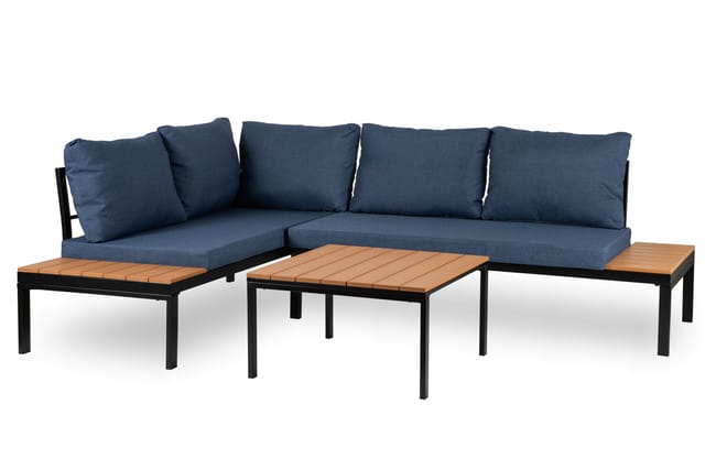 Konstrukcja zestawu oparta jest na solidnych, malowanych proszkowo stalowych ramach w eleganckim, czarnym kolorze, co gwarantuje nie tylko nowoczesny wygląd, ale także trwałość i odporność na zmienne warunki atmosferyczne. Boczki sof pełnią dodatkowo funkcję praktycznych blatów, dzięki czemu zawsze znajdziesz miejsce na filiżankę kawy, książkę lub okulary przeciwsłoneczne.